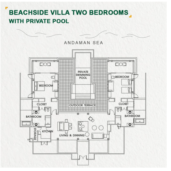 - 2 номера 2 Bedroom Beachside Private Pool Villa (350 м², макс. 6 чел.).
