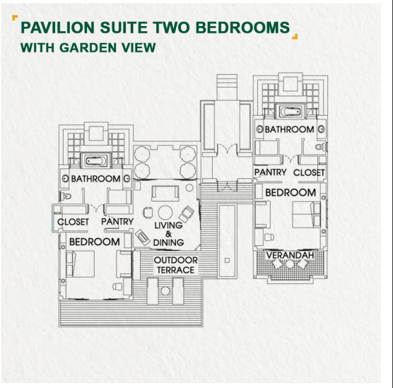 - 3 номера 2 Bedroom Garden View Pavilion Suite (160 м², макс. 6 чел.).