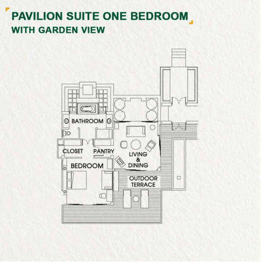 - 2 номера 1 Bedroom Garden View Pavilion Suite (150 м², макс. 3 чел.).