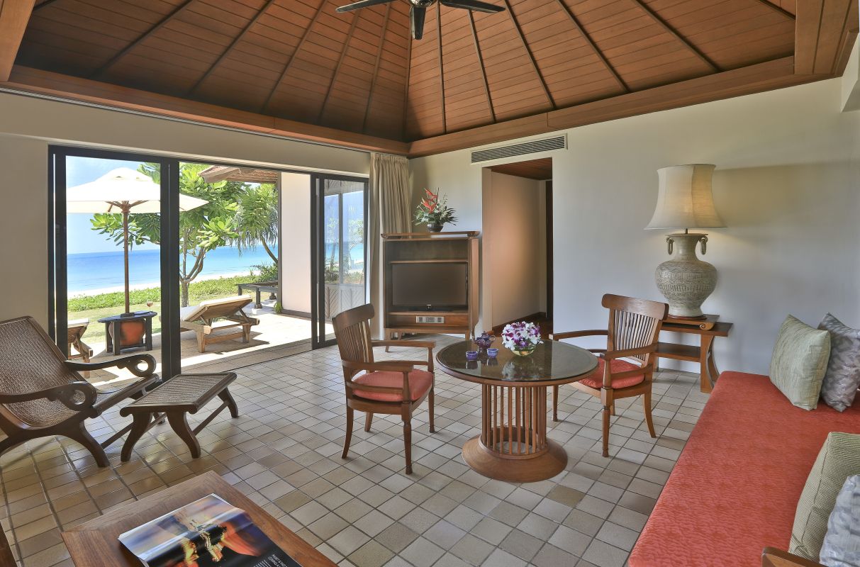 Павильон расположен на пляже, 2 спальни: двуспальная кровать king-size и 2 односпальные кровати, 2 ванные комнаты с ванной, гостиная и обеденная комната, терраса, вид на пляж, см.план номера;