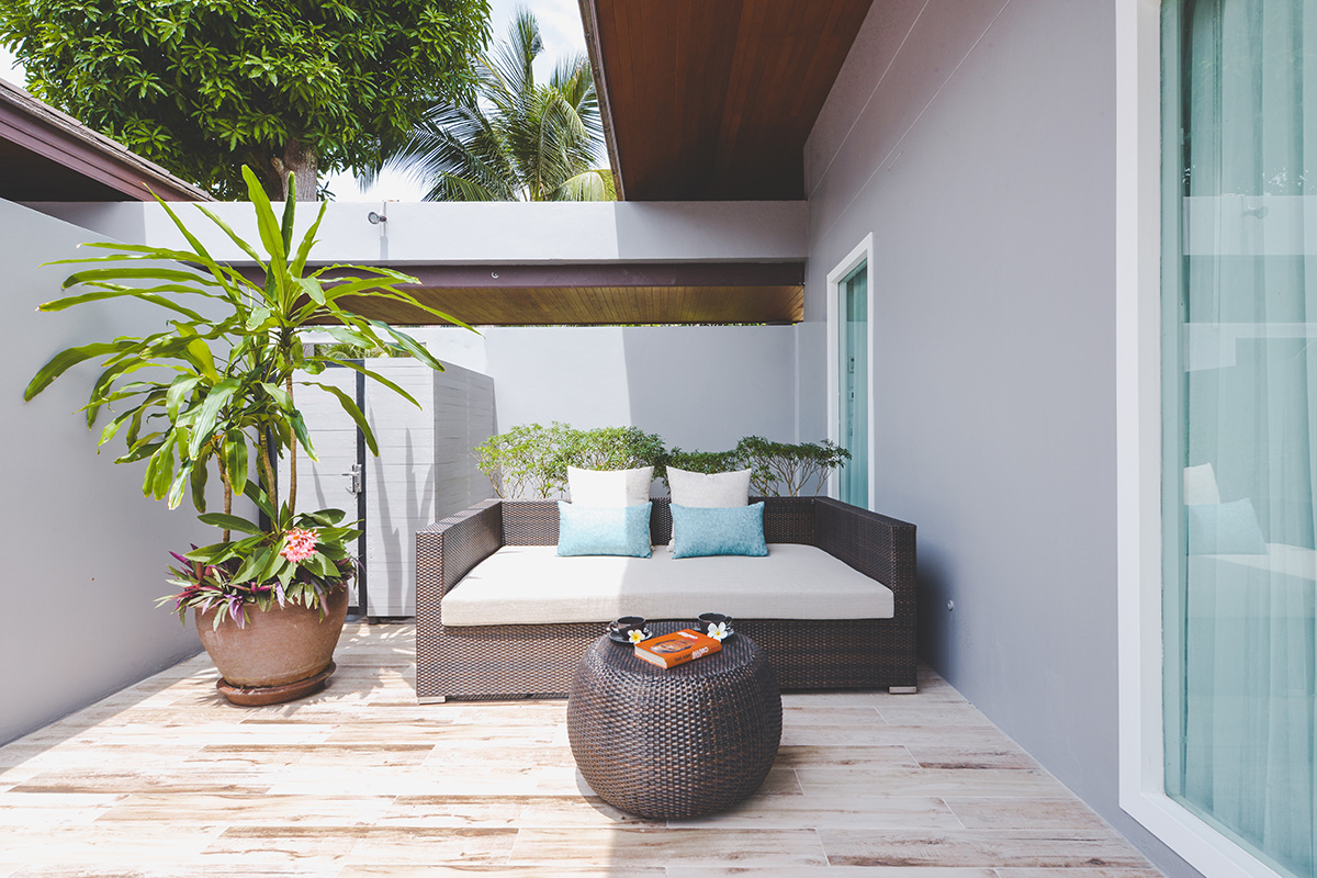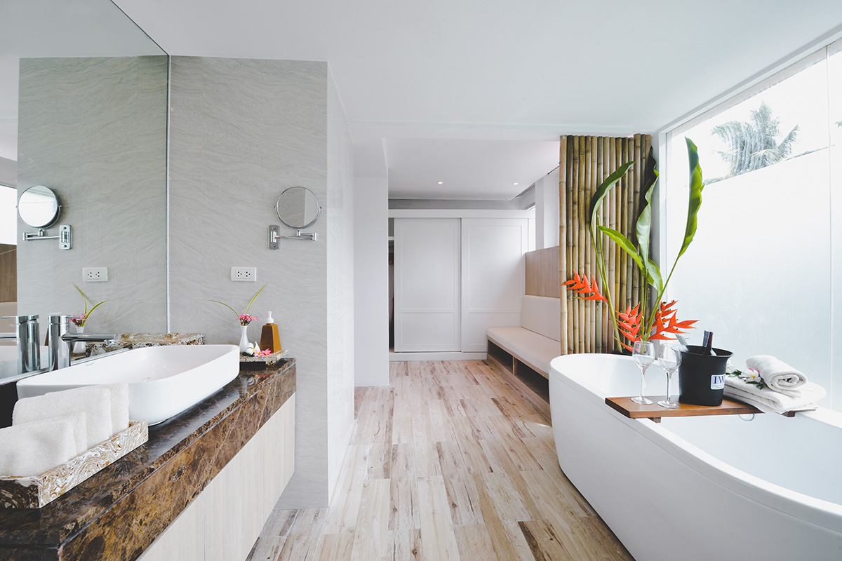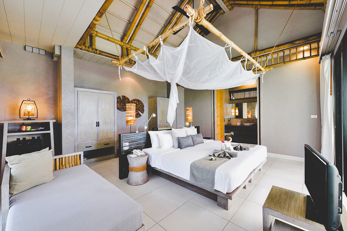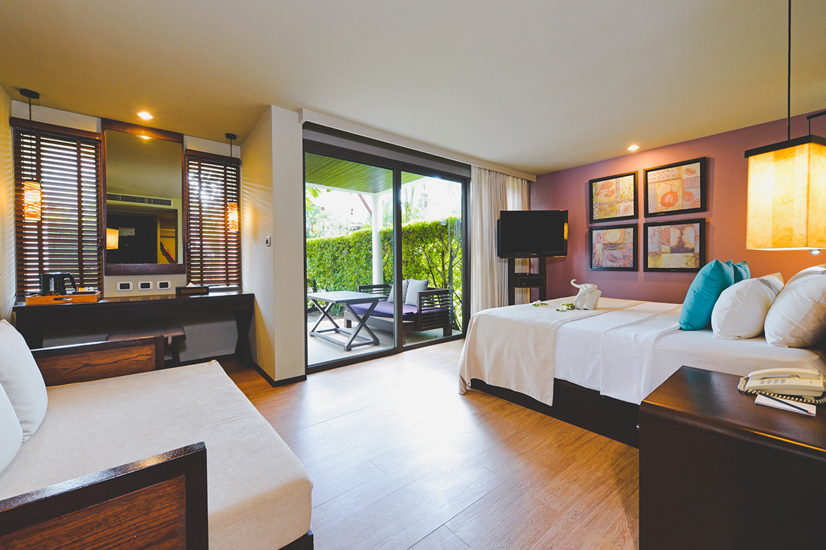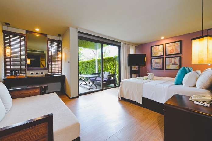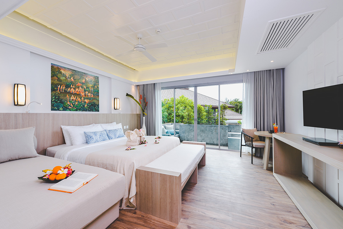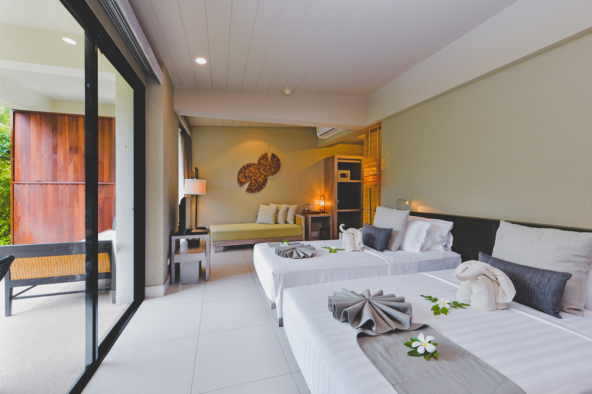 Расположены на верхнем этаже, в тайском современном дизайне, двуспальная кровать king-size или 2 односпальные кровати, ванная комната с ванной, балкон или терраса;