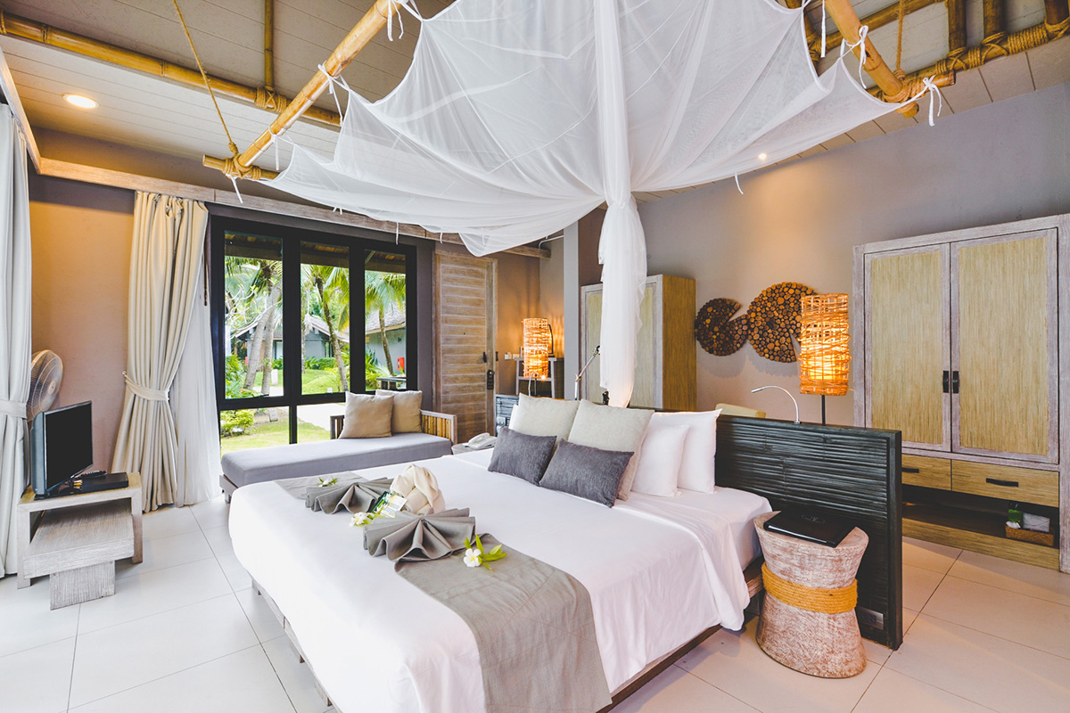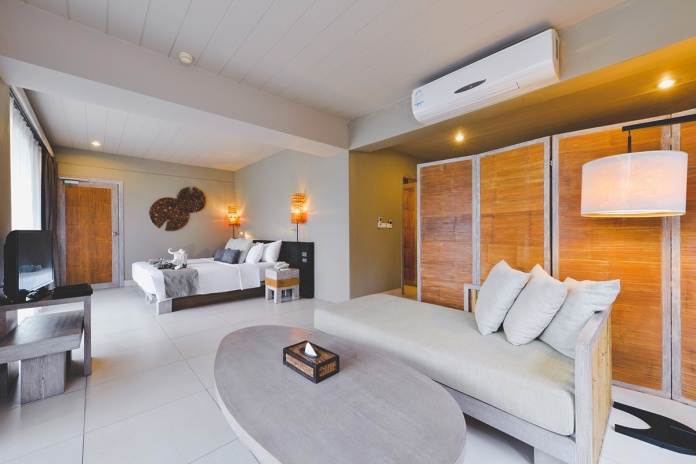 - 7 номеров Deluxe Beach Front Villa (70 м², макс. 3 чел.).