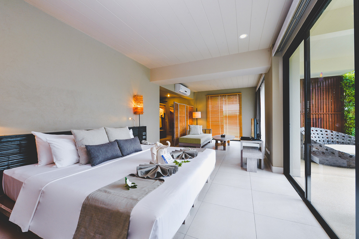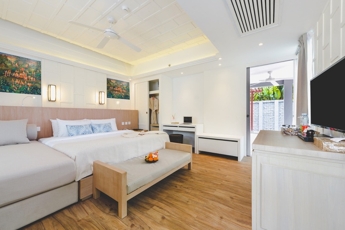 - 29 номеров Private Pool Deluxe Room (75 м², макс. 3 чел.).
