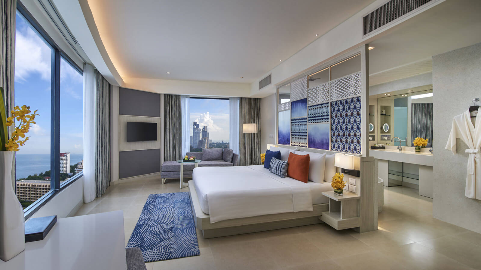 Двуспальная кровать king-size или 2 односпальные кровати, ванная комната с ванной и душем, балкон, вид на океан и город, бесплатный приветственный мини-бар (безалкогольные напитки; один раз за весь период проживания), доступ в эксклюзивный лаунж-клуб Napha;