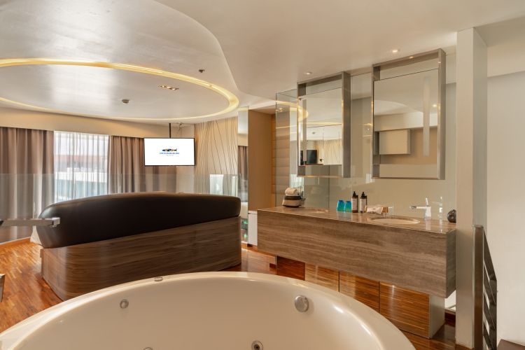 В номерах: Wi-Fi, телевизор, телефон, сейф, набор для приготовления чая/кофе, мини-бар, банные принадлежности.