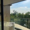Двуспальная кровать king-size, диван-софа, ванная комната с душем, просторный балкон, ванна на балконе, вид на сад;
