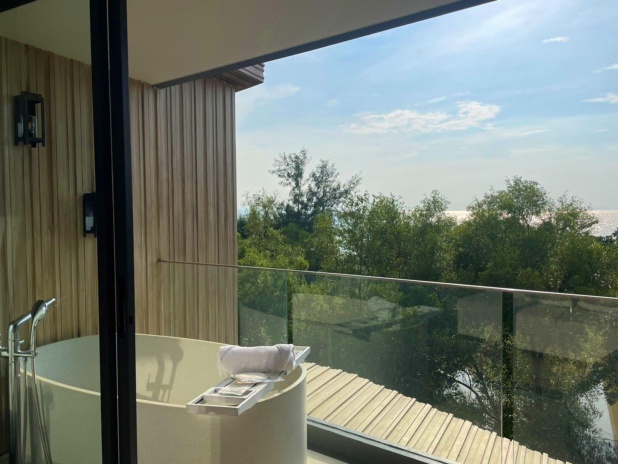 Двуспальная кровать king-size, диван-софа, ванная комната с душем, просторный балкон, ванна на балконе, вид на океан.