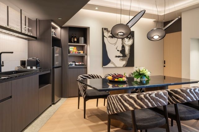 2 спальни: двуспальная кровать king-size и 2 кровати queen-size, гостиная комната, кабинет, зона для чтения, обеденная зона и кухонный уголок, балкон, вид на пляж, свежие фрукты ежедневно, персональный медиаплеер и Bluetooth-колонка BOSE®, доступ в лаунж Rock Royalty, где предлагаются бесплатный завтрак, закуски в течение дня, вечерние коктейли и услуги с момента заезда до выезда.