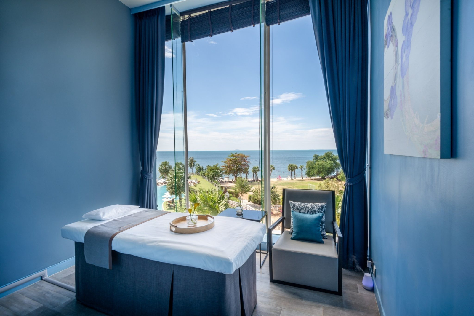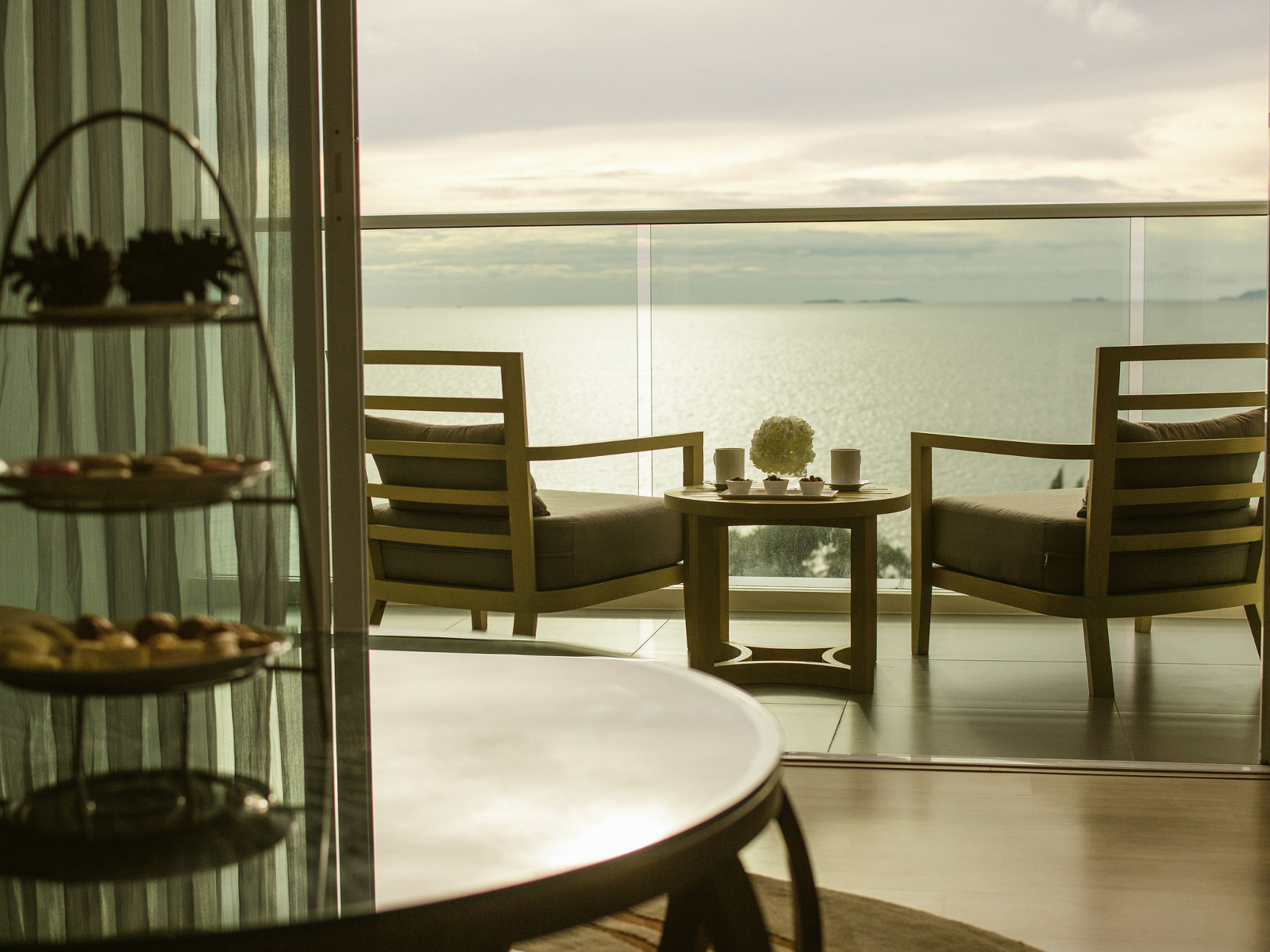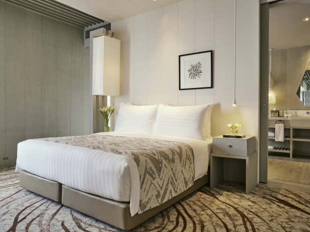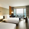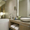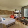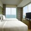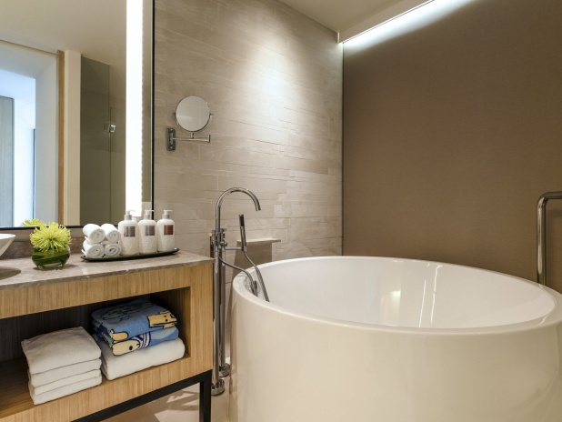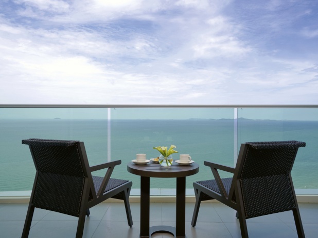 Номер с двуспальной кроватью king size или 2-мя односпальными кроватям, гостиный уголок с диваном, возможность установки дополнительного спального места, окна от пола до потолка; отдельная ванная комната со стеклянной стеной и рольшторой, с душем и ванной; меблированный балкон, вид на море; гости номера пользуются привилегиями lounge access*;