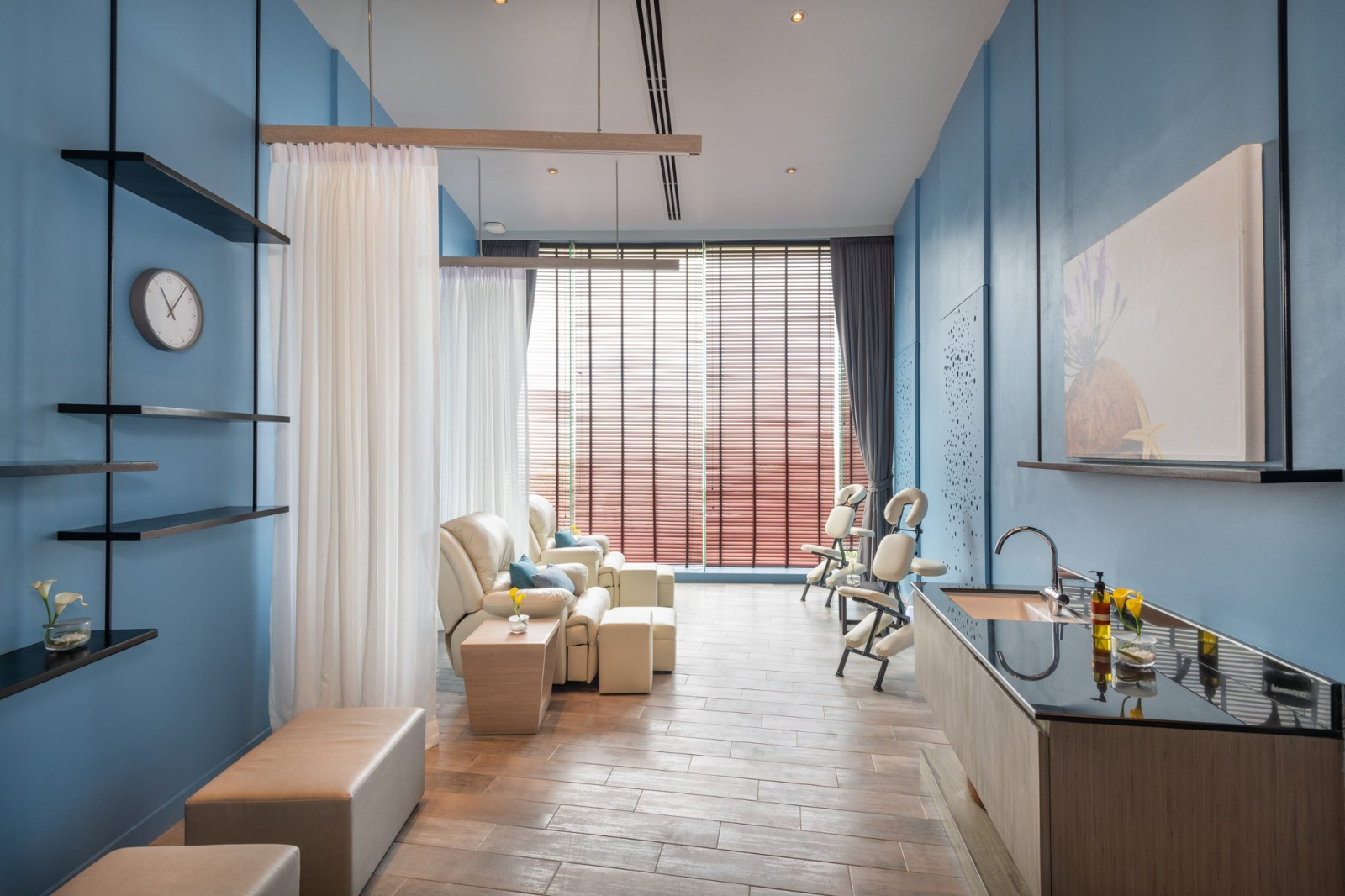 В номерах: Wi-Fi, кондиционер, окна от пола до потолка, рабочий стол, шкаф, халат, тапочки, туалетно-косметические принадлежности, увеличительное зеркало для макияжа, фен, телефон, ЖК-телевизор Smart TV, спутниковые каналы, сейф, мини-холодильник/мини-бар (платно), бесплатная бутилированная питьевая вода, электрочайник, принадлежности для приготовления чая и кофе, утюг и гладильная доска.