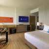 Полулюкс с двуспальной кроватью king size или 2-мя односпальными кроватям, гостиный уголок с диваном, возможность установки дополнительного спального места, окна от пола до потолка; отдельная ванная комната со стеклянной стеной и рольшторой, с душем и ванной; меблированный балкон, вид на море; гости номера пользуются привилегиями lounge access*;
