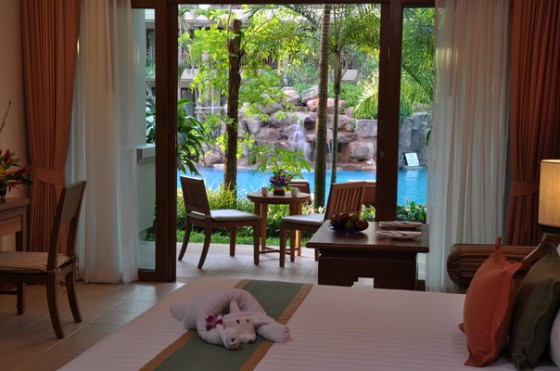 277 номеров с видом на сад и бассейн. 228 Superior Room (макс. 2+1 чел., 42 м2) 36 Deluxe Room (спальня с зоной гостиной, макс. 2+1 чел., 42 м2) 8 Suite Room (спальня с дверью, гостиная с кухней и обеденным столом, макс. 2+1 чел., 84 м2) 4 One Bedroom Pool Villa (спальня с дверью, гостиная, небольшой частный бассейн, макс. 2+1 чел., 105 м2) 1 Two Bedrooms Pool Villa (вид на море, 2 этажа, гостиная, 2 спальни с дверьми, небольшой частный бассейн, макс. 2+1 чел., 203 м2). В номерах: ванна и раздельный душ, фен, индивидуальный кондиционер, спутниковое TВ, телефон, мини-бар, набор для чая/кофе, сейф, балкон (кроме Deluxe на 1 этаже), халат и тапочки, интернет Wi-Fi.