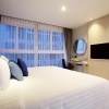 Просторный стильный номер со светлой мебелью, идеально подходит для двух взрослых (проживание детей не разрешено); в номере двуспальная кровать, просторная ванная комната с душем, окна от пола до потолка, меблированный балкон, вид на город/соседние здания;