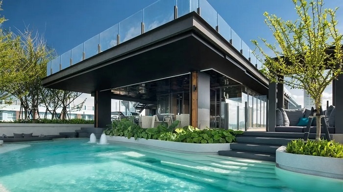 К услугам гостей номера, состоящие из спальни, гостиной зоны и кухни, открытый бассейн и бар на крыше отеля.