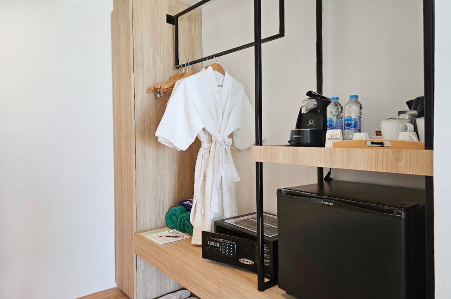 В номерах: Wi-Fi, мини-холодильник, телевизор со спутниковыми каналами, будильник с Bluetooth, фен, утюг и гладильная доска, банные принадлежности, телефон, зонт, набор для приготовления чая/кофе, фонарик, сейф, халат, тапочки, мягкие и плотные подушки.