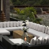 Двуспальная кровать king-size, софа, ванная комната с ванной и душем, меблированная терраса, вид на бассейн;