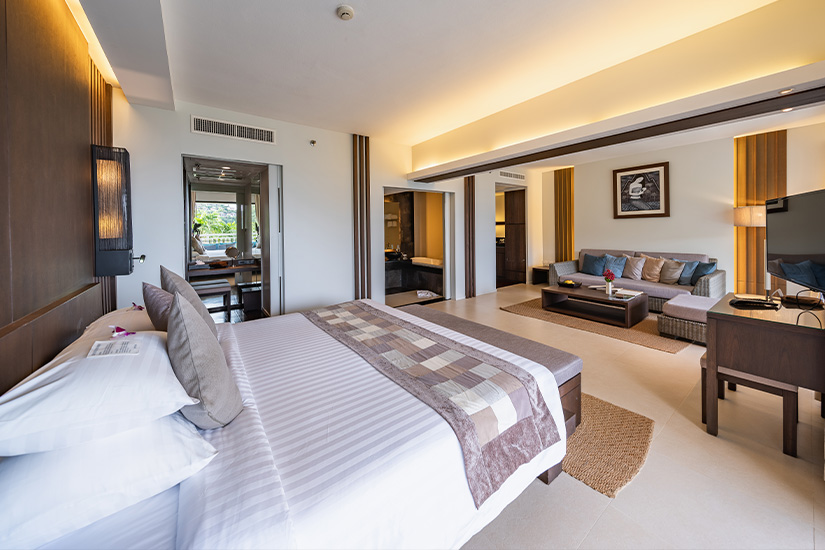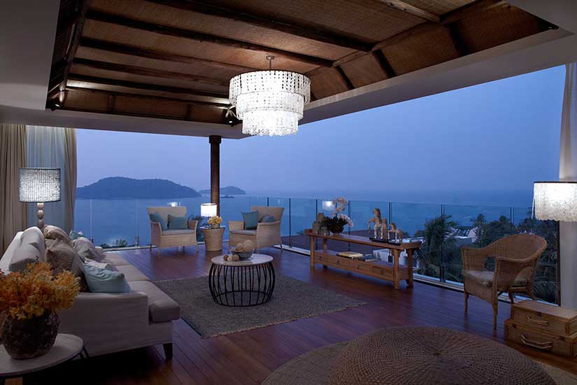 Пентхаус с 360-градусным видом на Андаманское море, 2-х этажный номер, окна от пола до потолка, 2 спальни, отдельная гостиная комната с диваном и обеденной зоной, мини-кухней, 2 ванные комнаты, душ под открытым небом, комната для спа-процедур и паровая баня, терраса для загара, бассейн (6 х 15 м), частный лифт, вид на океан.