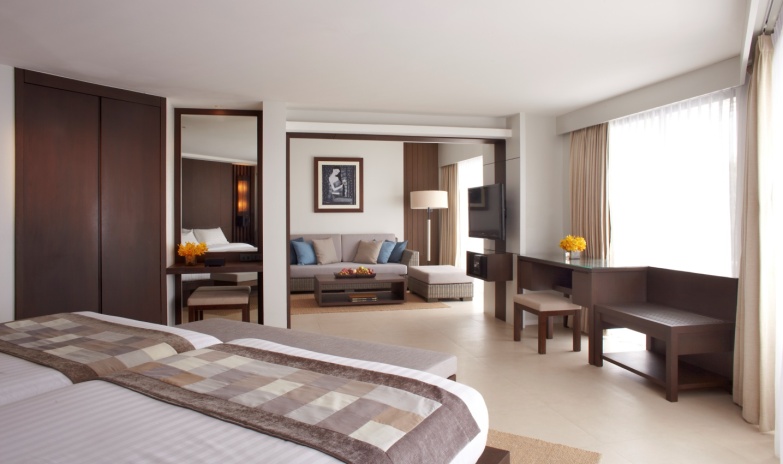 Двуспальная кровать king-size или 2 односпальные, просторная гостиная зона с диваном, гардеробная, ванная комната с ванной и душем, большой балкон;