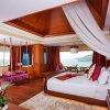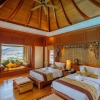 king-size, кушеткой у окна, собственной ванной комнатой с джакузи и гардеробной; вторая спальня с 2-мя односпальными кроватями, кушеткой у окна, собственной ванной комнатой с джакузи, гардеробной; отдельная просторная гостиная с большой гостевой и обеденной зоной, баром, отдельной кухней; тропический душ на свежем воздухе; сауна у бассейна, терраса с шезлонгами и зонтиками, беседка-павильон, живописный вид на море;
