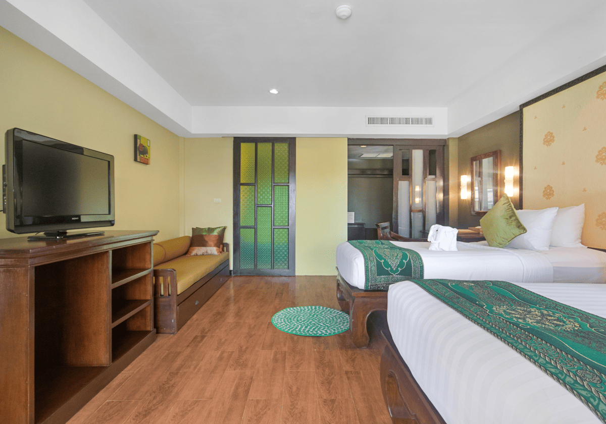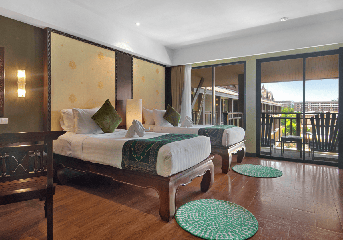 Среди тропической растительности на территории курорта размещаются невысокие корпуса в 2-4 этажа и небольшие коттеджи-виллы в тайском стиле. Гостям предлагаются уютные и красиво оформленные номера с балконами или террасами: с собственных  балконов открывается вид на бассейн или горы, а часть номеров с террасами имеет прямой выход к бассейну. Семьям с детьми или компаниям друзей идеально подойдут просторные люксы с двумя спальнями.