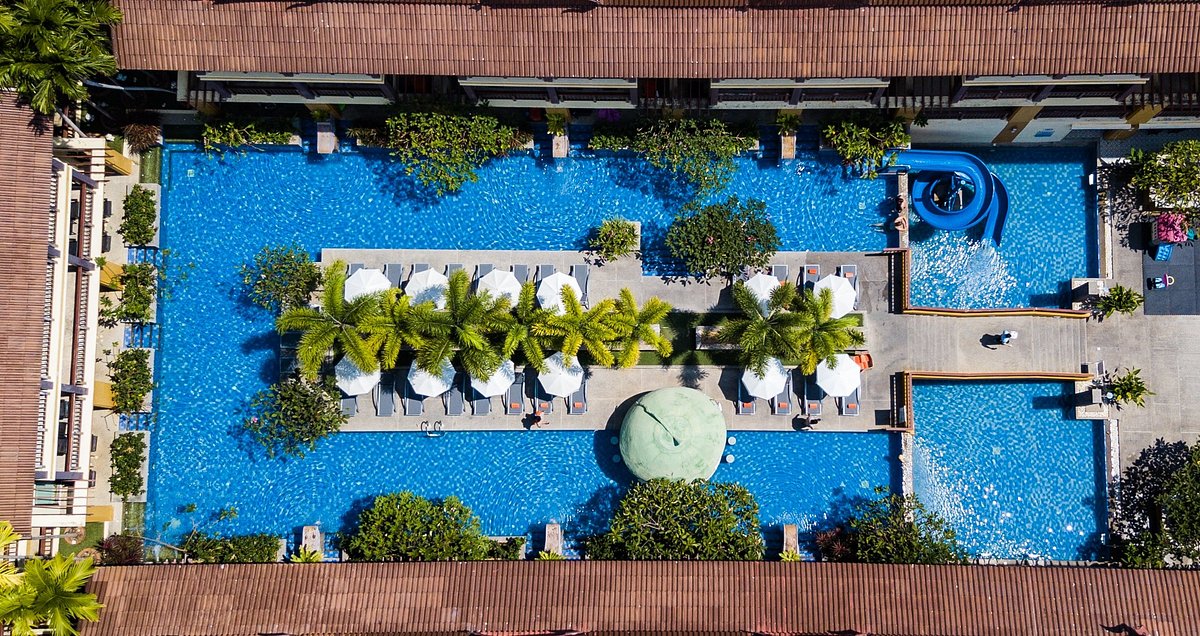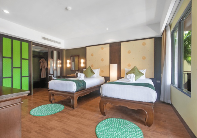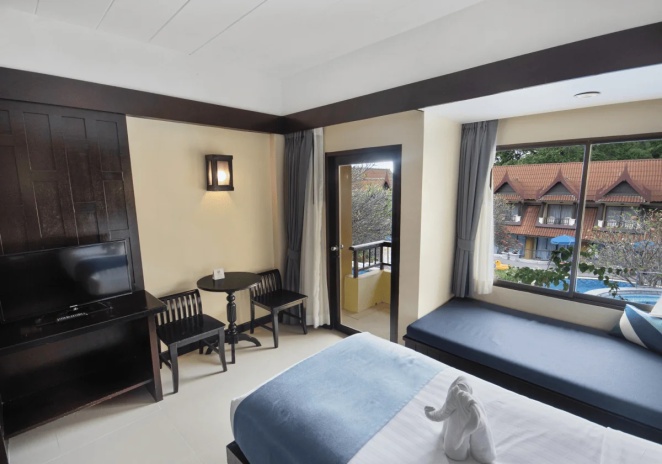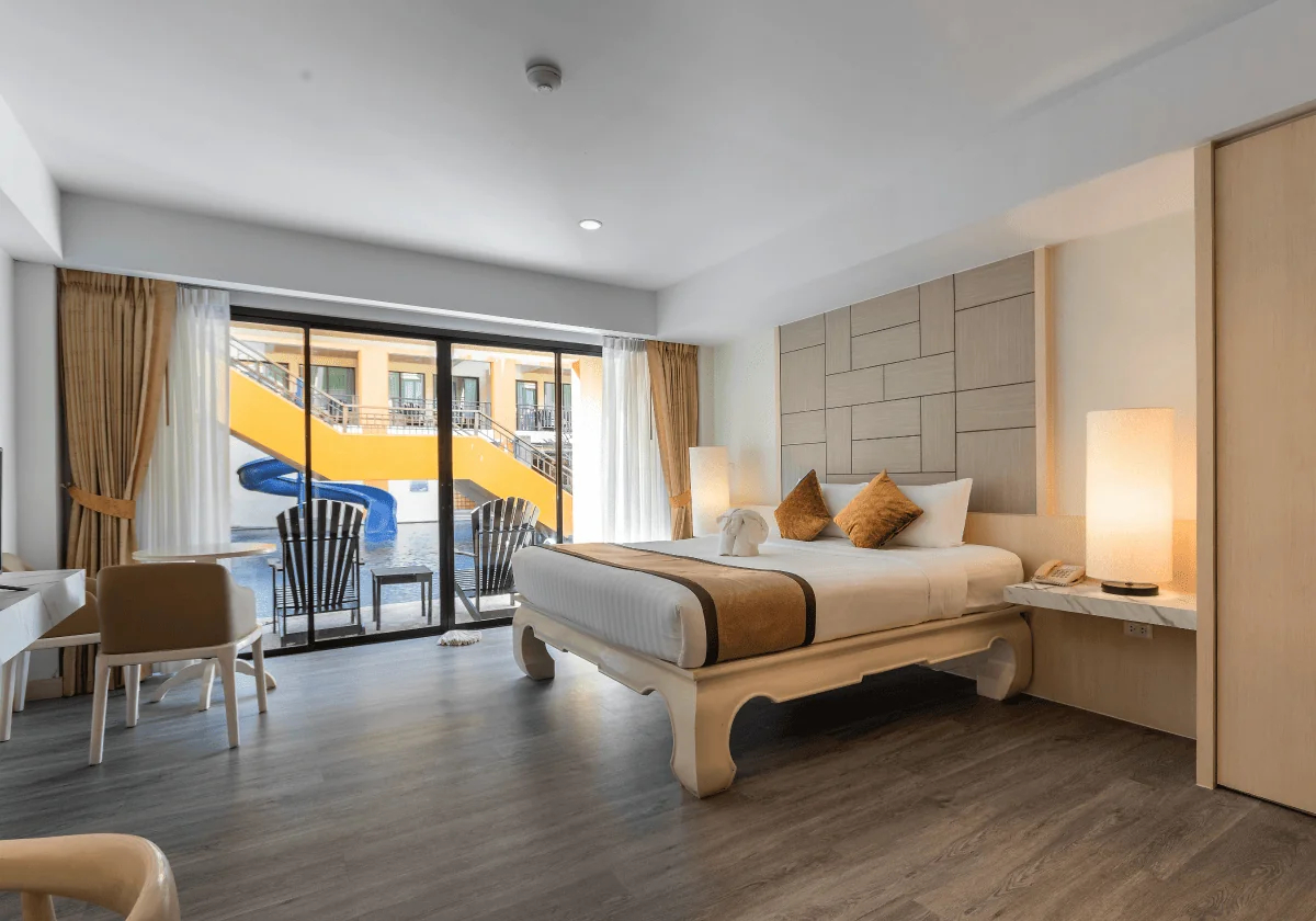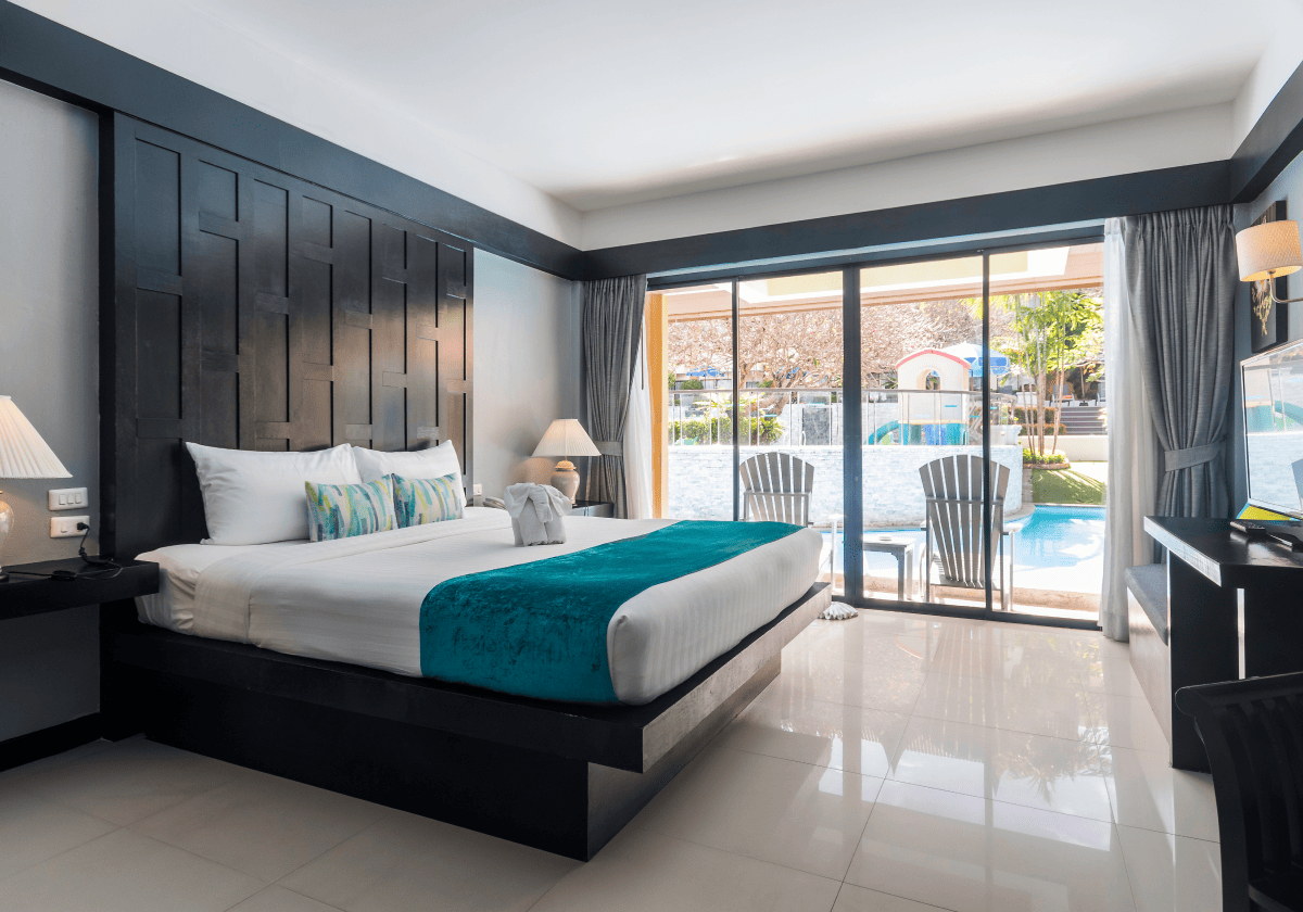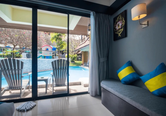 • 64 номера  Deluxe Pool View (40 м², макс. 2+2 или 3 чел.).
