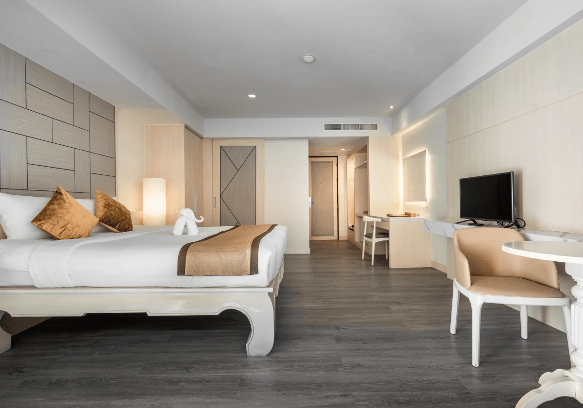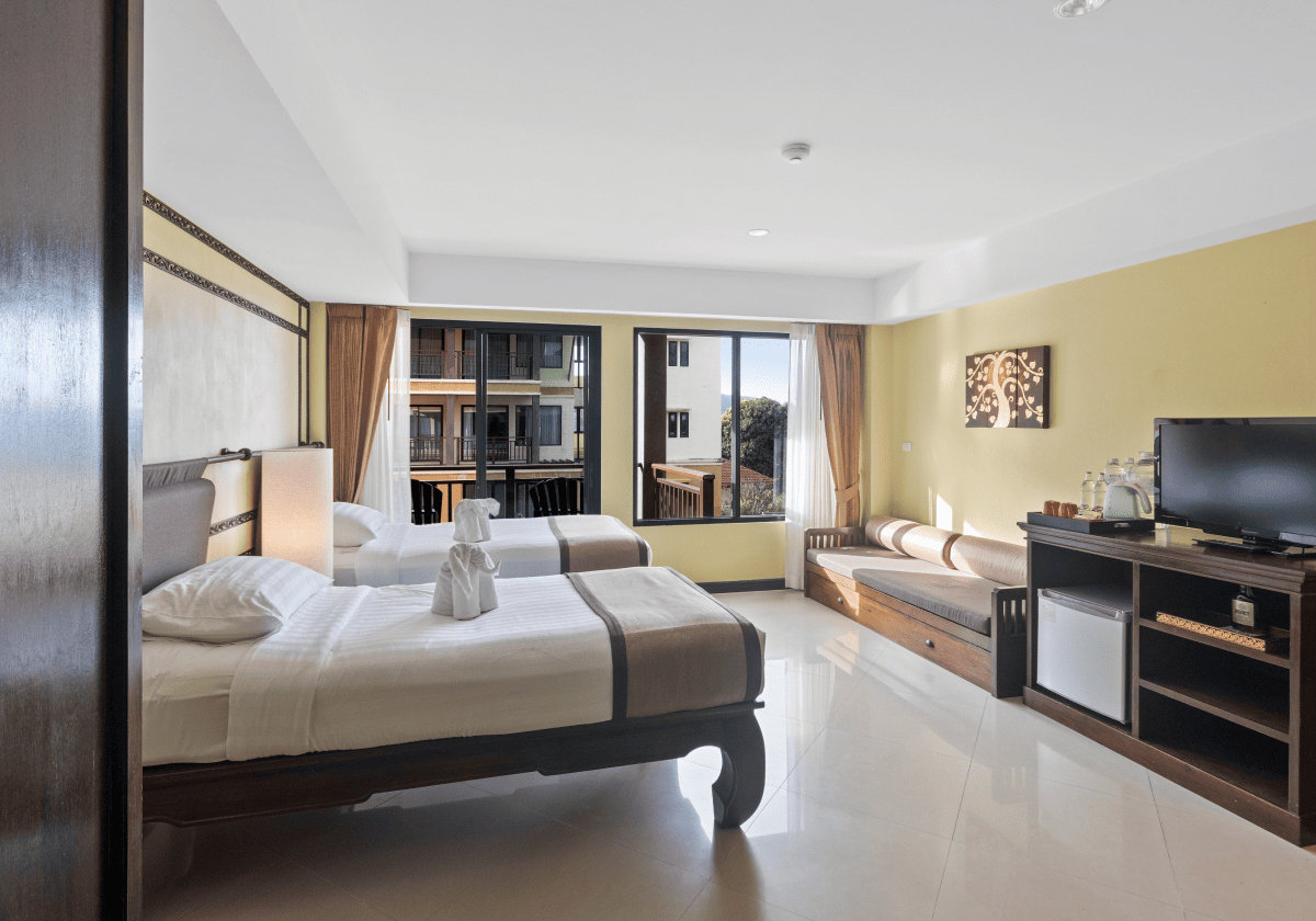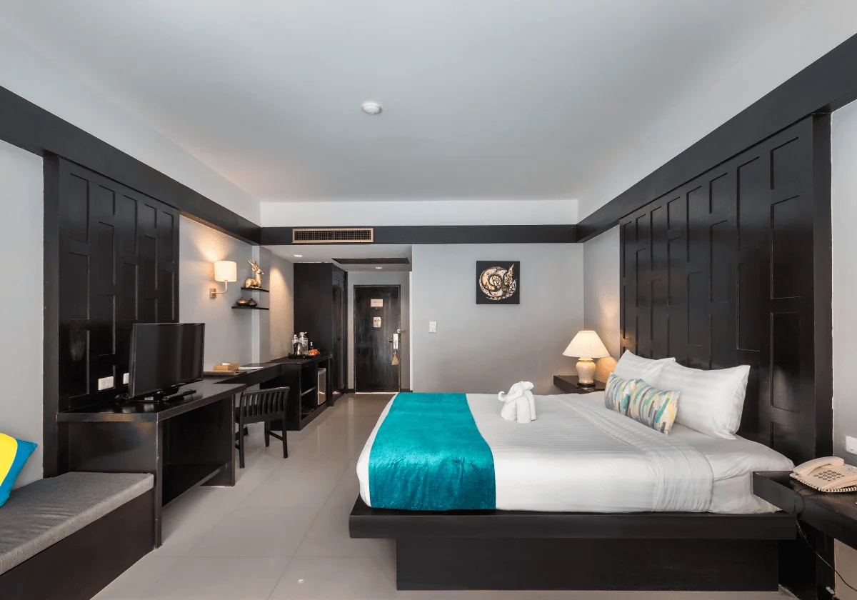 • 64 номера  Deluxe Pool View (40 м², макс. 2+2 или 3 чел.).