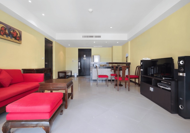 Очень просторный представительский люкс, метраж площади включает балкон; две отдельные спальни: с 1-ой двуспальной кроватью king-size и 2-мя односпальными кроватями и софой; отдельная гостиная с диваном-кроватью, музыкальным центром, барной стойкой, холодильником и обеденной зоной со столом и стульями; ванная комната с душем и ванной; меблированный балкон, вид на бассейн.