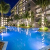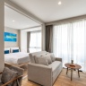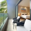 Просторный стильный люкс с 2-мя односпальными кроватями, раздвижная дверь отделяет гостиную с дополнительным спальным местом - диваном, оборудованной кухонной зоной и обеденной зоной на 2 персоны; отдельная ванная комната с тропическим душем; меблированный балкон, вид на бассейн;