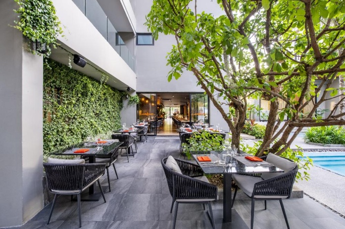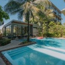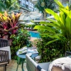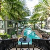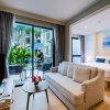 Просторный стильный люкс с 1-й двуспальной кроватью queen size, раздвижная дверь отделяет гостиную с дополнительным спальным местом - диваном, оборудованной кухонной зоной и обеденной зоной на 2 персоны; отдельная ванная комната с тропическим душем; меблированная терраса с прямым выходом к бассейну; вид на террасу и бассейн;