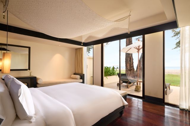 Номера расположены на 1 этаже, двуспальная кровать или 2 односпальные кровати, кресло, ванная комната с ванной и душем, терраса, вид на море, привилегии Dusit Club;