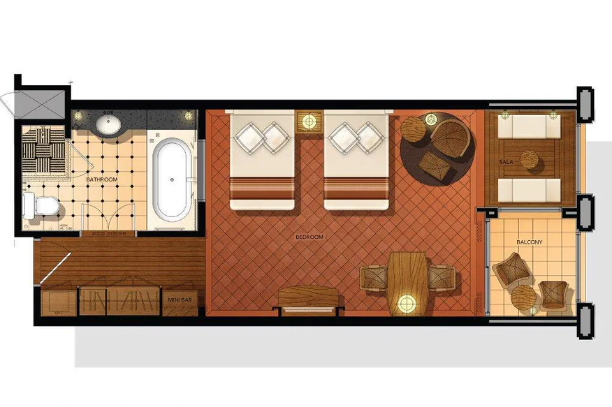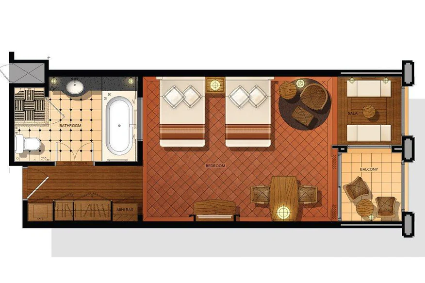 50 номеров Grande Terrace Room (63 м², макс. 2+2 или 3 чел.).