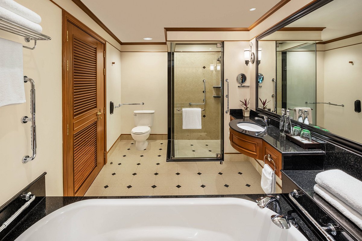 В номерах: Wi-Fi, кондиционер, окна от пола до потолка, рабочий стол, шкаф, халат, тапочки, ванная комната отделана мрамором, туалетно-косметические принадлежности, увеличительное зеркало для макияжа, фен, телефон, ЖК-телевизор Smart TV, спутниковые каналы, сейф, мини-холодильник/мини-бар (платно), бесплатная бутилированная питьевая вода, электрочайник, принадлежности для приготовления чая и кофе, утюг и гладильная доска.