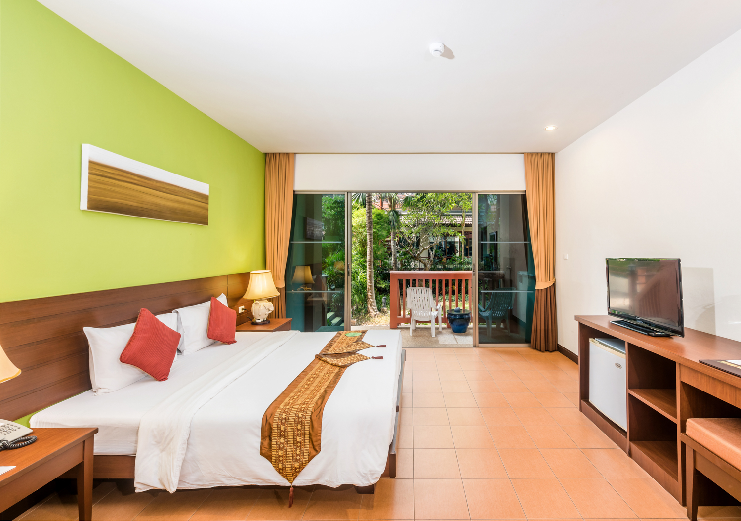 двуспальная кровать king-size или 2 односпальные кровати, ванная комната с ванной и душем, терраса, прямой выход к бассейну;