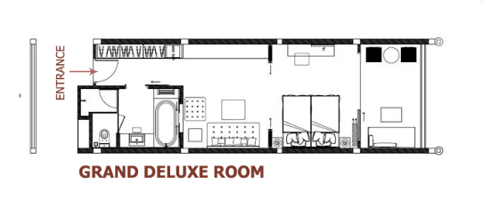 • 69 номеров Grand Deluxe Room (50 м², макс. 3 или 2+2).