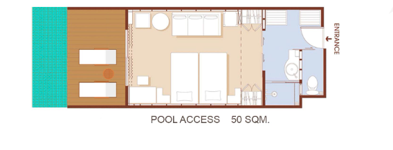 • 34 номера Pool Access (50 м², макс. 2+1).