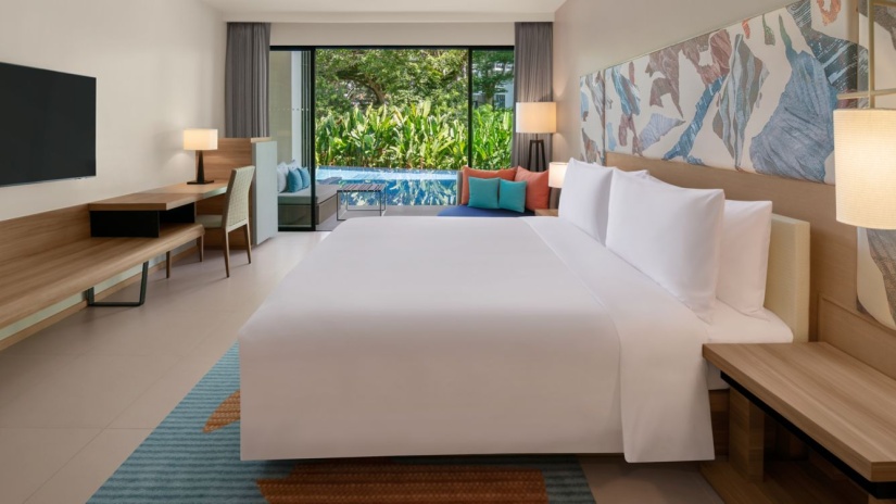 Le Meridien Phuket Mai Khao Beach Resort расположен на пляже Май-Кхао в северно-западной части Пхукета. Отель располагает 13 типами номеров и люксов с просторными балконами, открывающими виды на бассейны, сады или побережье. Некоторые номера имеют прямой доступ к бассейну или частные террасы. Архитектура и интерьер сочетают эстетику середины прошлого века с элементами местного тайского дизайна, создавая атмосферу уюта и роскоши.