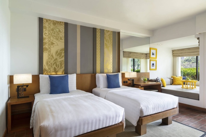 Двуспальная или 2 односпальные кровати, кушетка в нише у окна, ванная комната с ванной и душем, балкон или терраса, вид на лагуну, привилегии эксклюзивного клуба;