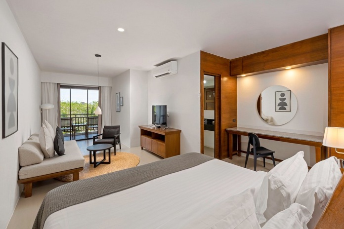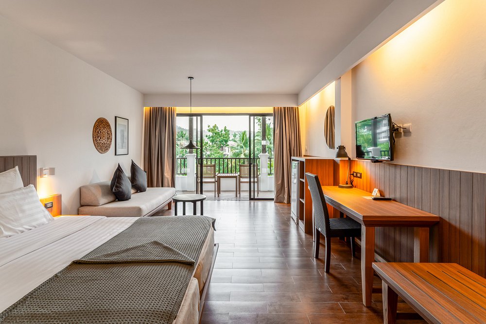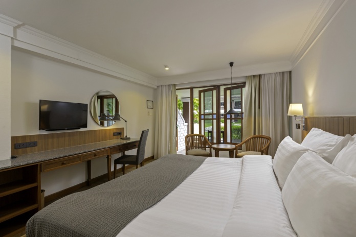 Номера на 1-ом этаже в крыле Beach, двуспальная кровать king size или 2 односпальные кровати; столик со стульями, отдельная ванная комната с душем; меблированная терраса, вид на сад;