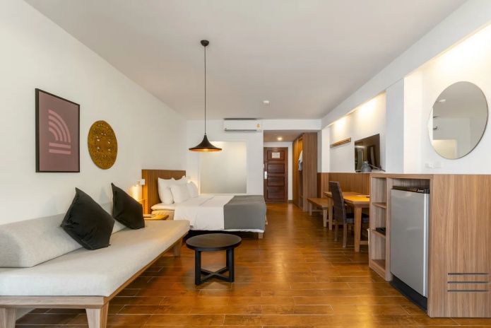 В номерах: Wi-Fi, окна от пола до потолка, кондиционер, рабочий стол, шкаф, халат, тапочки, полотенца для пляжа, туалетно-косметические принадлежности, фен, телефон, ЖК-телевизор, спутниковые каналы, сейф, холодильник/мини-бар (по запросу, платно), бесплатная бутилированная питьевая вода, электрочайник, принадлежности для приготовления чая и кофе, фонарик, зонтик, утюг и гладильная доска.