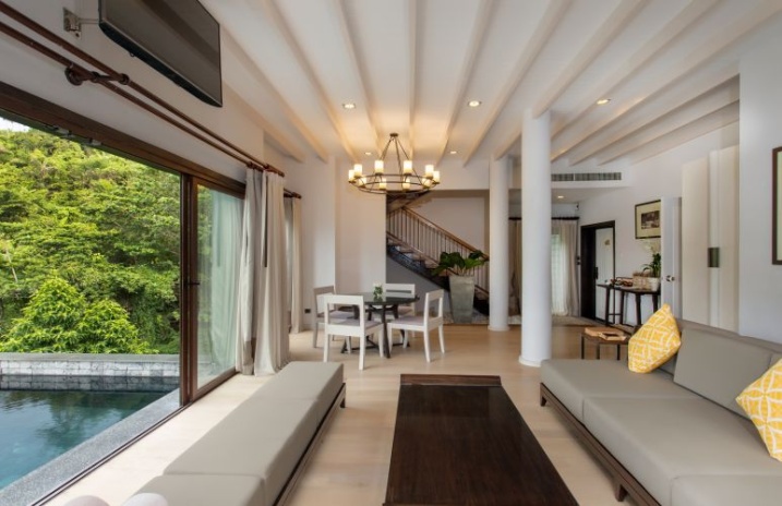 The Shore at Katathaniм представляет собой коллекцию частных вилл с бассейном, уединенных среди пышных пальмовых садов. Отель расположен на склоне горы, с прямым выходом к морю и песчаному пляжу Ката Ной