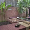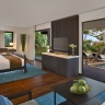 Двуспальная кровать, просторная гостиная зона с диваном-софа и встроенным баром с винным холодильником, ванная комната с ванной и отдельная душевая, терраса с небольшим бассейном (5,5 х 2,6 м), вид на сад;