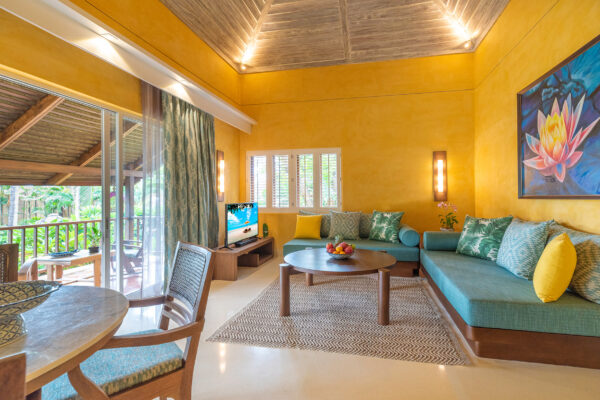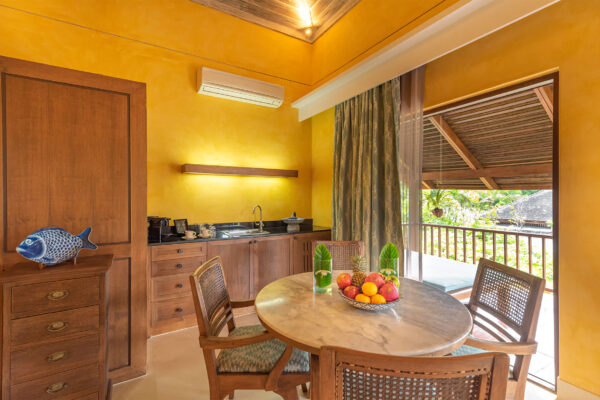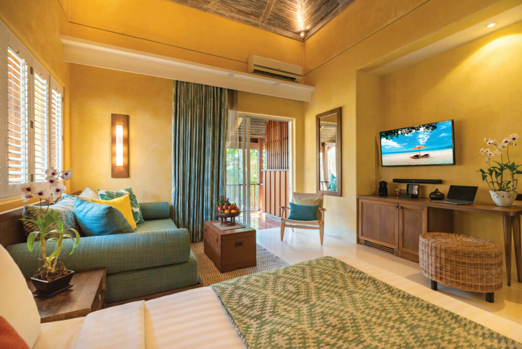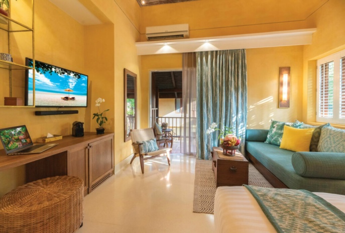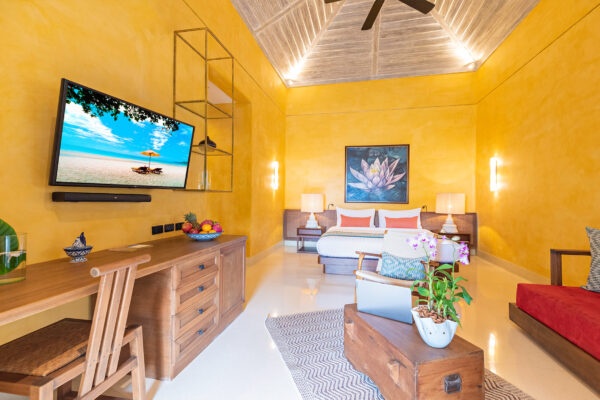 В номерах: кондиционер, потолочный вентилятор, Wi-Fi, телевизор, звуковая панель Bluetooth, телефон, халат, банные принадлежности, фен, сейф (вмещает ноутбук), зонт, набор для приготовления чая/кофе, пляжная сумка, фонарик.
