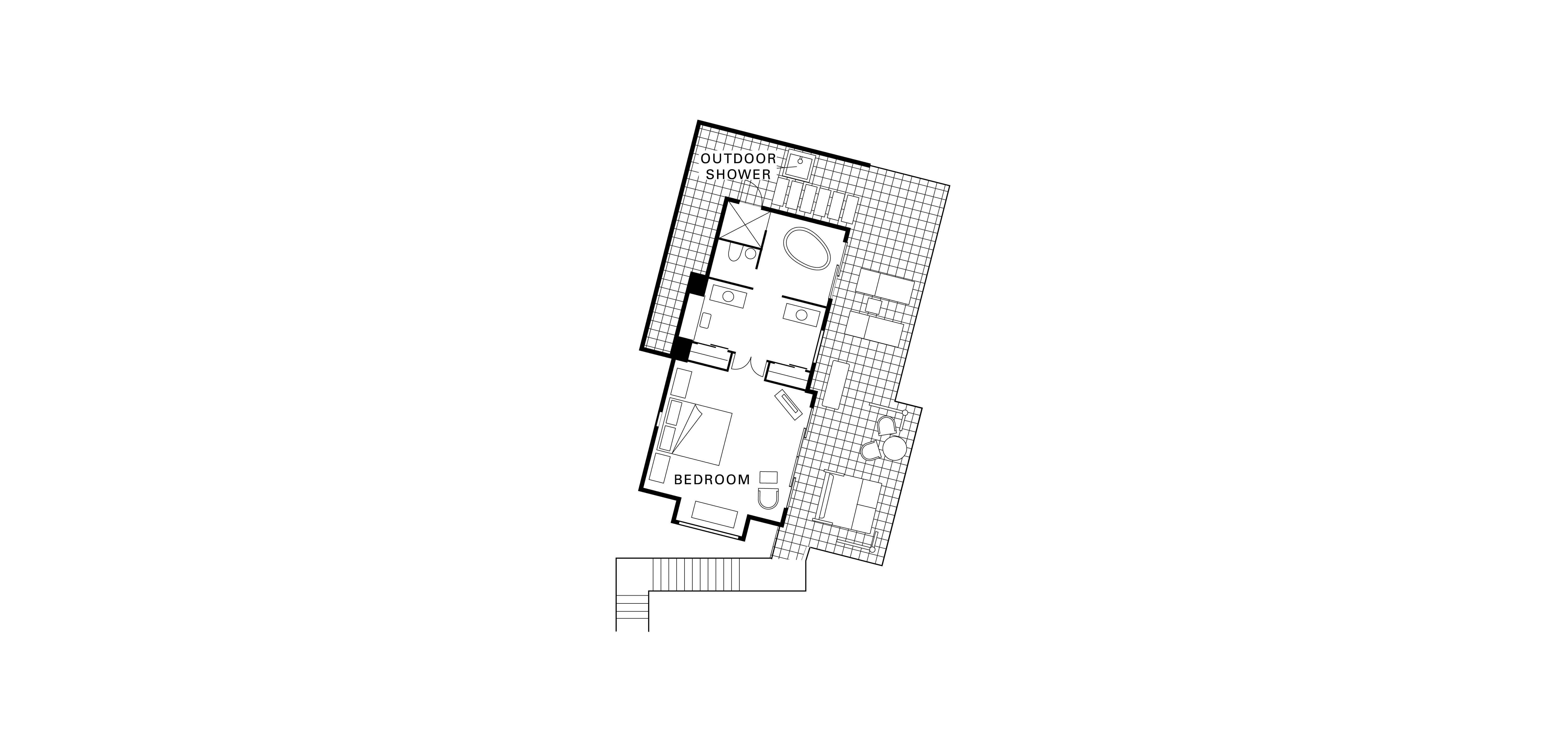 На холме, 2 спальни: двуспальная кровать king-size и две односпальные кровати, 2 ванные комнаты с ванной и душем, гостиная комната с диваном и обеденным столом, частный пейзажный бассейн размером 4 х 14 м, оснащена дополнительной туалетной комнатой и 2 душа на открытом воздухе, частная терраса, вид на залив и остров Pha Ngan, см. план номера;