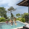 На уединенном склоне холма, вдали от пляжа, двуспальная кровать king-size, одна раскладная кровать или одна детская кроватка, ванная комната, панорамным вид на Сиамский залив, небольшой персональный бассейн, собственная терраса;