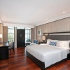 Максимальная конфиденциальность благодаря расположению на отдельном этаже отеля, спальня с двуспальной кроватью king-size, отдельная гостиная комната с диваном и обеденным столом, ванная комната с круглой ванной и душем, балкон с видом на бассейн и тропические сады,  кофемашина Nespresso, привилегии The Level;