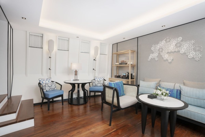 Расположен в  барже, двухэтажный номер, который был преобразован из старой рисовой баржи, двуспальная кровать king-size, ванная комната с ванной и душем, терраса, прямой выход  к бассейну с террасы, кофемашина Nespresso, привилегии The Level.