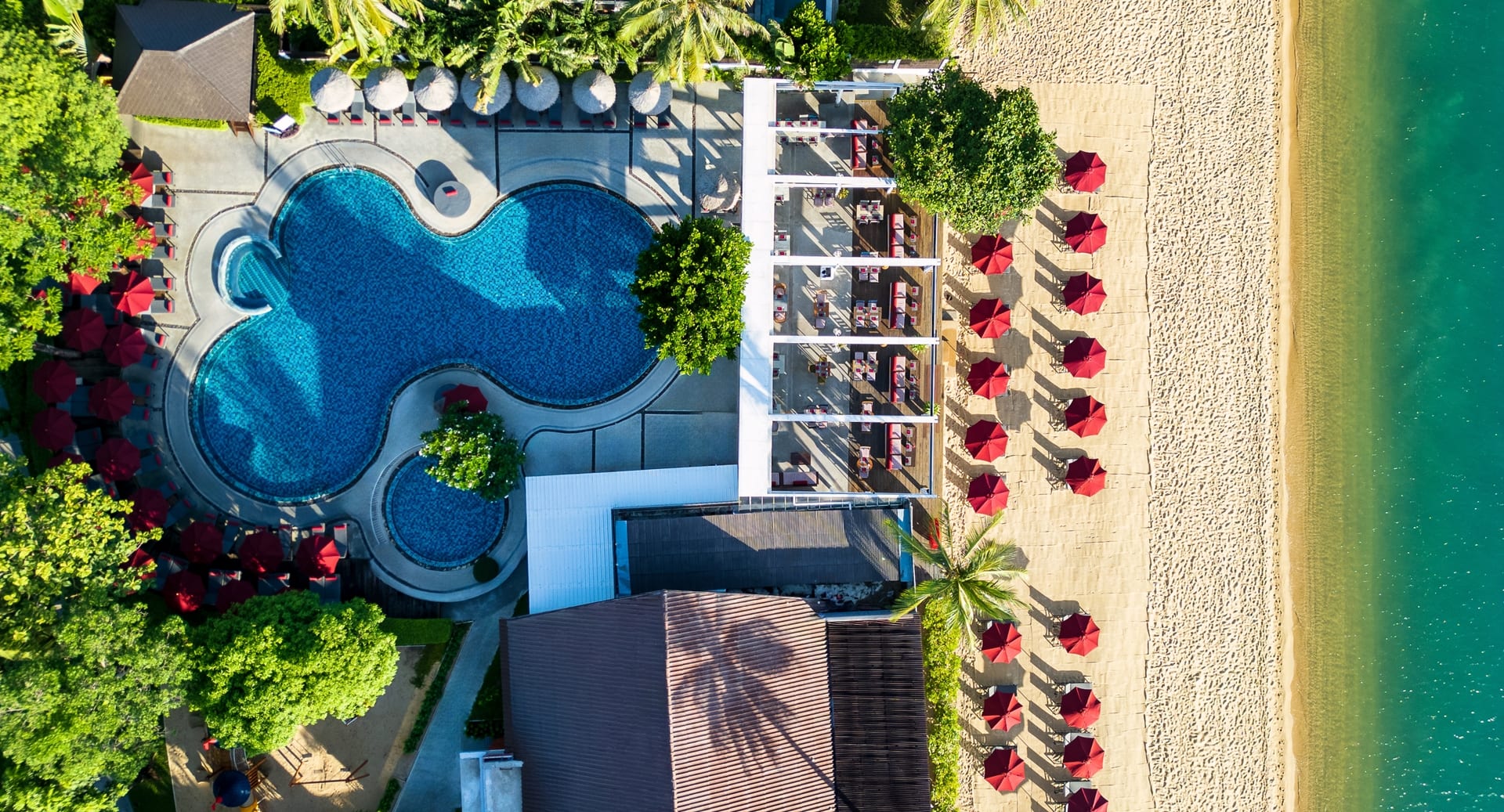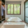 Отдельная вилла на берегу моря c 2-мя спальнями и межкомнатными дверьми: главная спальня с двуспальной кроватью, собственной ванной комнатой с душем, ванной и гардеробной; гостиная с диваном, кофемашина, туалетная комната; вторая спальня с 2-мя односпальными кроватями, собственной ванной комнатой с ванной и душем; меблированная терраса с зоной отдыха под навесом, шезлонги, зонт, душ на открытом воздухе, сад, панорамный бассейн, выход на пляж;