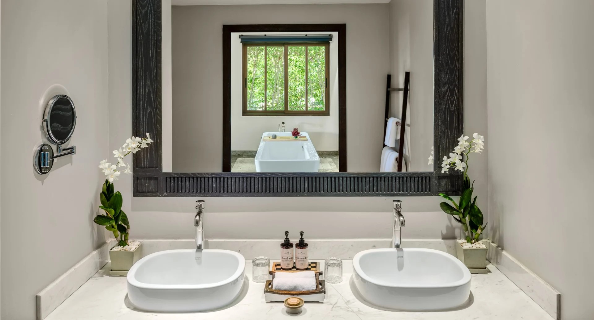 Уединенная президентская вилла с 2-мя спальнями в отдельных павильонах: в первом павильоне − спальня с двуспальной кроватью и гостиной зоной с диваном, обеденная комната, кофемашина, туалетная комната, ванная комната с душем, ванной и гардеробной; во втором павильоне − спальня с 2-мя односпальными кроватями, ванной комнатой с душем и гардеробной; общая меблированная терраса с зоной отдыха под навесом, зонт, шезлонги, панорамный бассейн, сад, душ на открытом воздухе; выход на пляж,