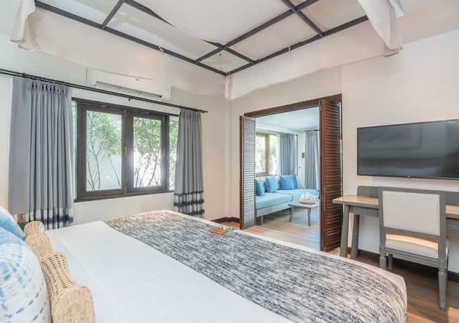 В номере: Wi-Fi, кондиционер сейф, телевизор со спутниковыми каналами, телефон, туалетно-косметические принадлежности, косметическое зеркало, фен, весы, электрочайник, кофемашина (в большей части вилл), бутилированная вода, мини-холодильник, набор для приготовления чая и кофе, пляжная сумка и сандалии (на виллах), халаты и тапочки (на виллах), гладильная доска и утюг (на виллах).