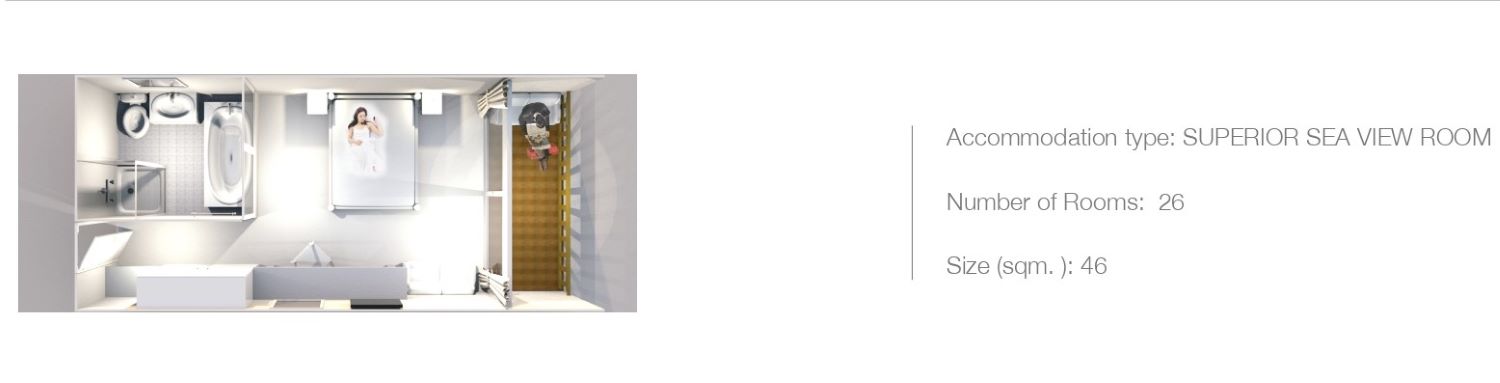 • 26 номеров Superior Sea View (46 м², макс. 3 чел.).